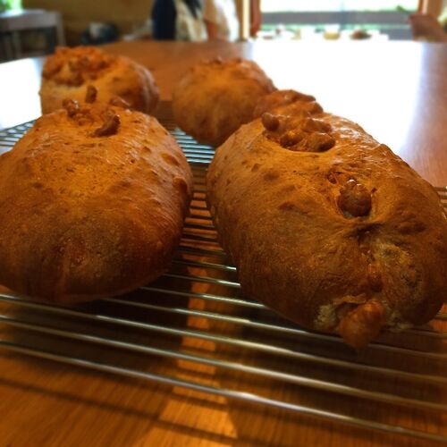 チーズパンが焼けました。大きく焼いているので、中の白くてもちもちのところを味わえるパンになっています。これで、5月のフランスパンのレッスンはおしまいです。フランスパンは、オーブンとの付き合い方が難しいですが、お家で焼けるようになると嬉しい…