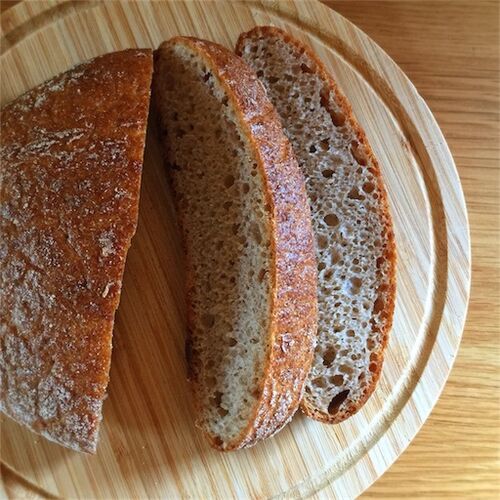 2回目のサワー種ライ麦パンです。 前回と同じ50%ライ麦で、 前回よりももう少しふわっと食べやすくしたいと 思って作りました。 毎回ぺちゃんこに焼けるのは置いといて まずまずの出来です。 だけど、ひとくち食べて、 う〜、最高!っていうのを作ってみた…