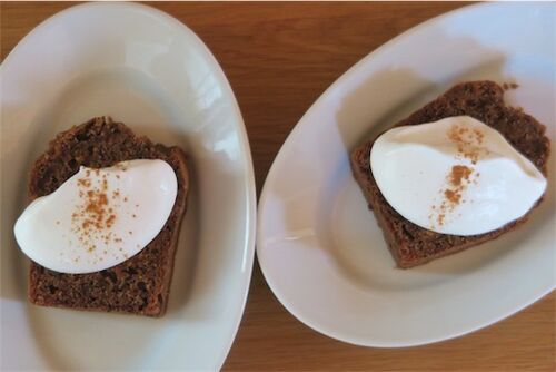 生クリームをのせてみましたが、 ミネラルっぽい味がする キャロットケーキには やっぱりチーズクリームがあいます。