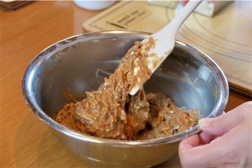 焼く前の生地です。 にんじん入りのせいか お惣菜感があります。