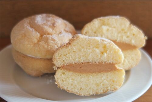 別立てのスポンジで作る ブッセです。 ふわっと軽く 口溶けがいいのが特徴です。 混ぜすぎないように 気をつけて作りましょう。 ブッセの間には キャラメルバタークリームを はさみます。 ほろ苦いキャラメルが ブッセによく合います。 お楽しみに。