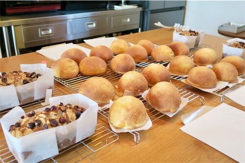 黒豆とかぼちゃのスイートブールと ヘーゼルナッツのケーキの レッスンが始まりました。 パンもケーキも 美味しそうに焼けて ひと安心。 このパンは、 お店のオーブンで 焼いたパンみたいな 軽さがあります。 かぼちゃ、すごい!!