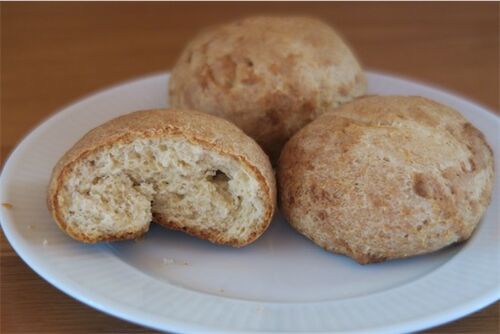 めりめりっと よく膨らみました。 冷蔵庫で一晩置くよりも こねた当日焼いた方が よく膨らみます。 軽さにこだわるときは 当日焼き、 味わいを濃くしたいときは 翌日焼きと、 選んで作れると たのしいです。