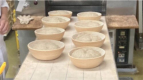 食パン実習の日。 ストレートの食パンと 中種入りの食パンを 作りました。 先生の作ったストレートの食パンと 自分たちが作った食パンの 食感の違いにびっくり。 生地を壊さないって、 やっぱり大事なんだと 学びました。