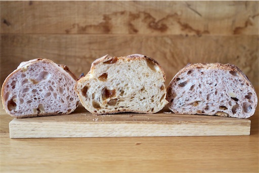 2020-02-05 メゾンカイザー お店 大丸のメゾンカイザーのパンです。 左からくるみのパン、いちじくのパン、 くるみといちじくのパンです。 ほぉ、全部生地が違うのですね! なんか美味しい、なぜか美味しいのは、 カンブリア宮殿で紹介されていた あのルヴァン種が使われているからなのかなぁ…と 美味しいルヴァン種への憧れが募ります。