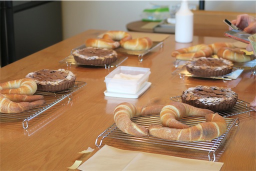 2023-10-19 レッスンのクレッセントとリンツァートルテ レッスンの様子 撮影中を撮影。 美味しそうに焼き上がりました。 今回のレッスンは、 手間がかかりそうで そうでもないので、 いつもよりも レッスンが早く終わっています。 平日で13:00頃、 土曜日で13:15頃終了しています。