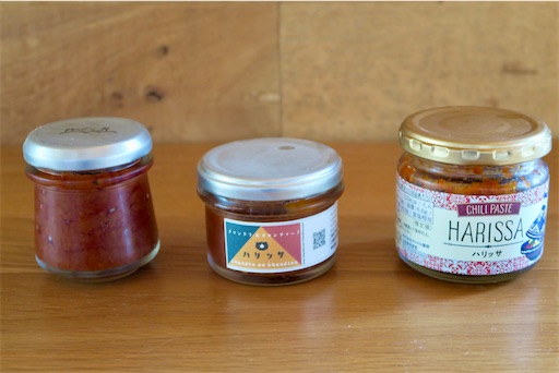 2025-07-09 ハリッサいろいろ 気になる食べ物 ハリッサは 中東の辛味スパイスです。 ピタパンには 欠かせません。 左から大手門の「meek」 シンプルながらうまい! 鰹だしのような旨みを感じる! でももちろん鰹は入ってない。 真ん中は熊本の「チャンドラ エ チャンディーノ」 甘味があって、フルーティ! 粒々コリアンダーがアクセント! 辛味控えめ。 右はみんなの街の「カルディ 」 辛味と塩味のバランスがいい! ついたっぷりつけてしまう! どれも美味しいですよ。